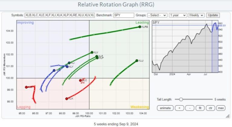 On the weekly RRG, this move has had no material impact so far.