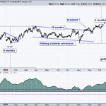 Treasury yields declined while bond prices rose a little. The weekly chart of the iShares 20+Year Treasury Bond ETF (TLT) below shows TLT approaching its first resistance line. This happened before, which caught me off guard—a lesson learned. But now that bonds are creeping back up, I may give it another go.
